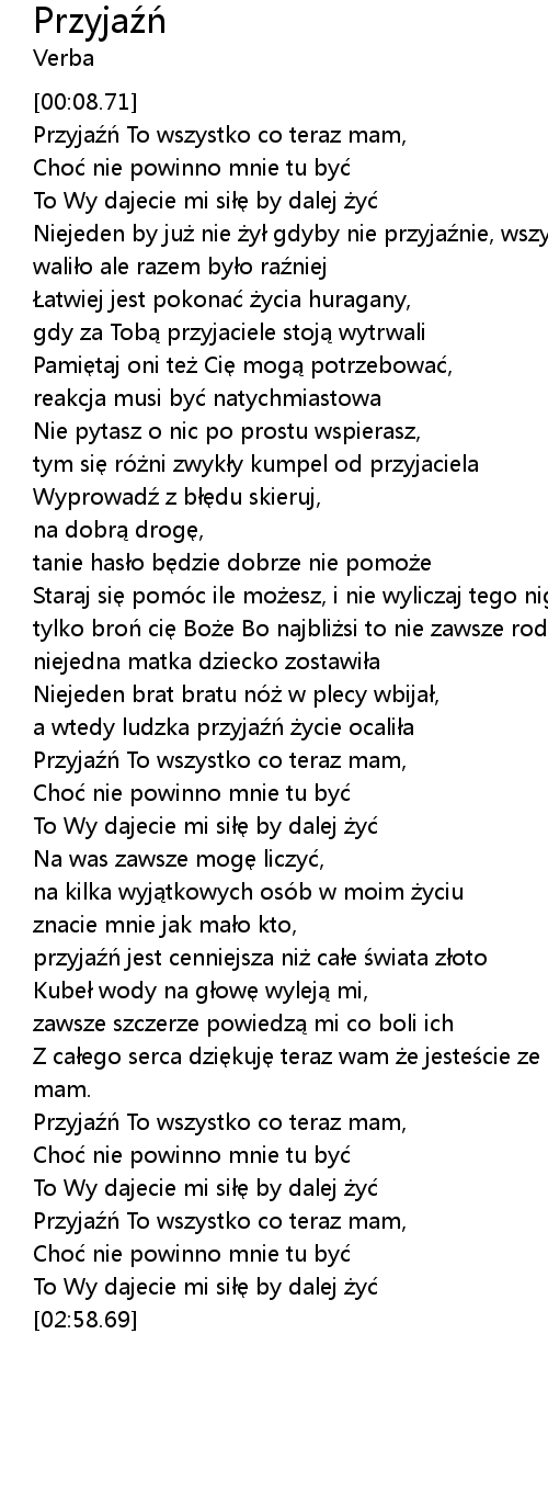 | [02:39.05] | Przyja To wszystko co teraz mam, |
