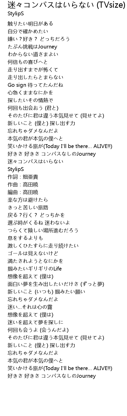 | 歌曲 | 迷々コンパスはいらない (TVsize) |