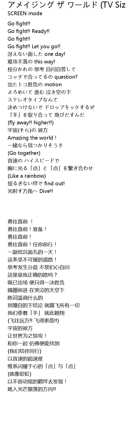 | 歌曲 | アメイジング ザ ワールド (TV Size) |