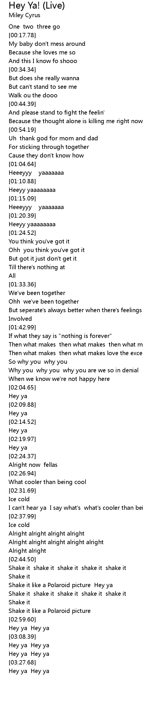 Hey ya Hey ya |