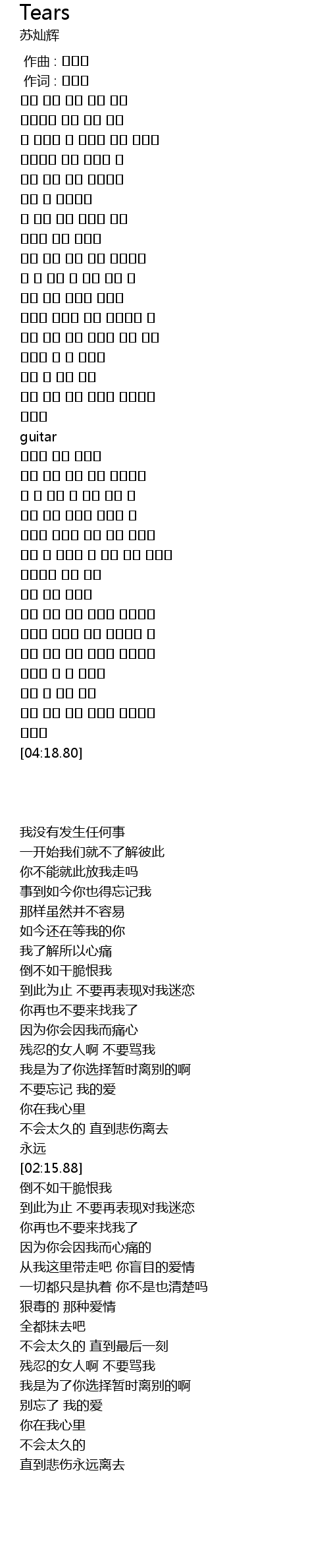 | 歌曲 | Tears |