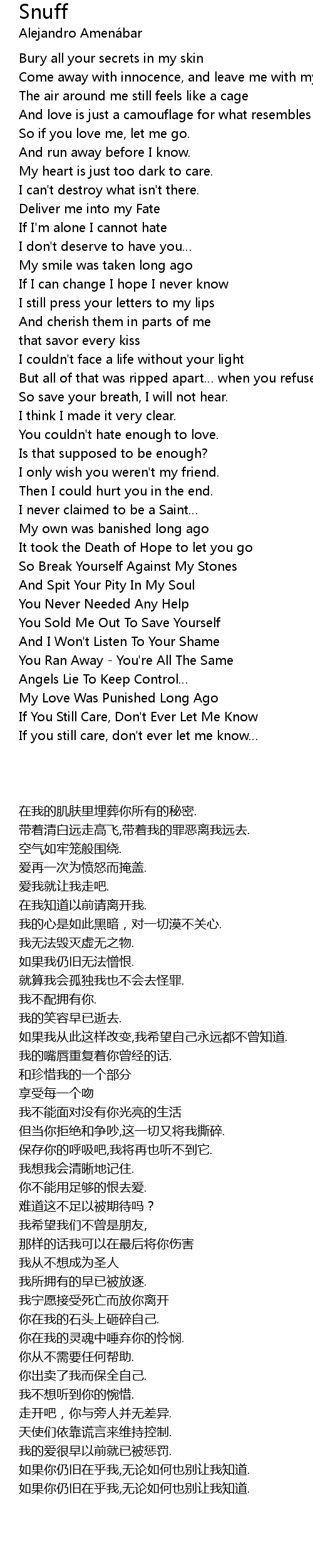 | [00:19.520] | 在我的肌肤里埋葬你所有的秘密. |