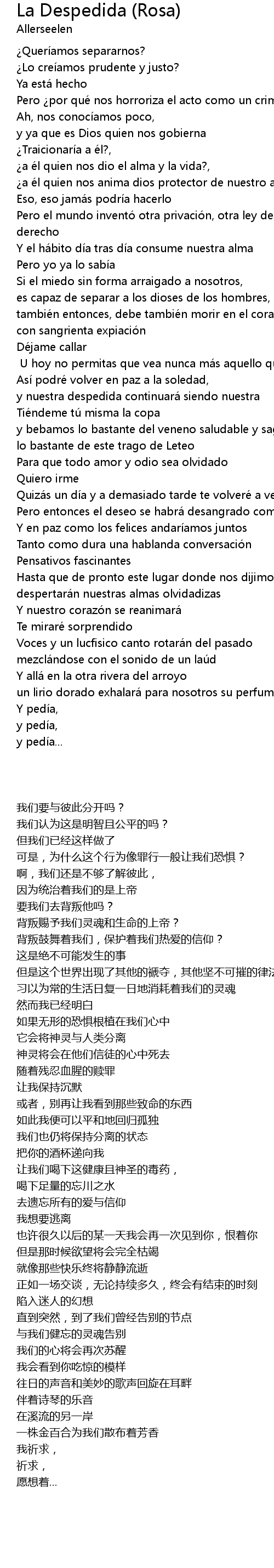 | 歌曲 | La Despedida (Rosa) |