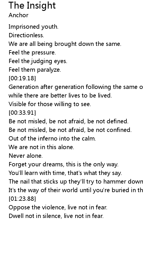 | [00:47.85] | Be not misled, be not afraid, be not confined. |