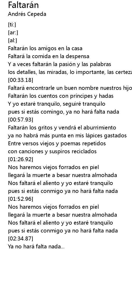 | [00:20.88] | Y a veces faltarán la pasión y las palabras |