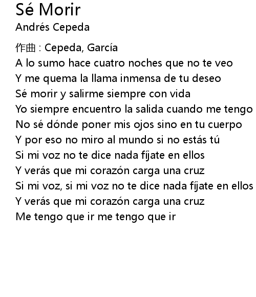 | 歌曲 | Sé Morir |