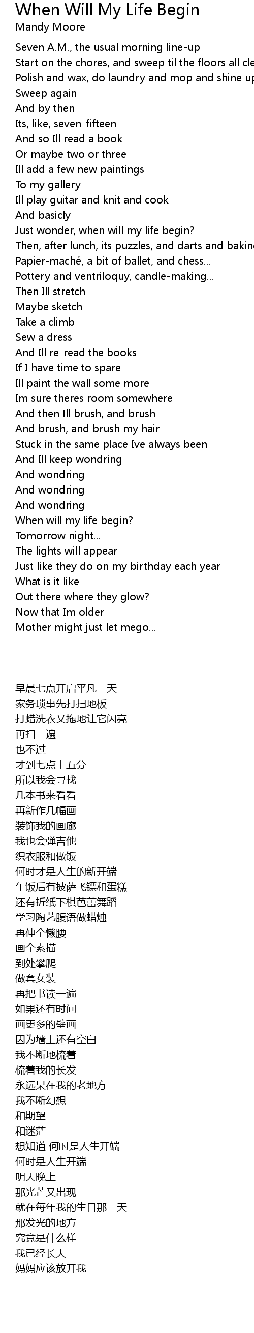 | [00:48.420] | Just wonder, when will my life begin? |