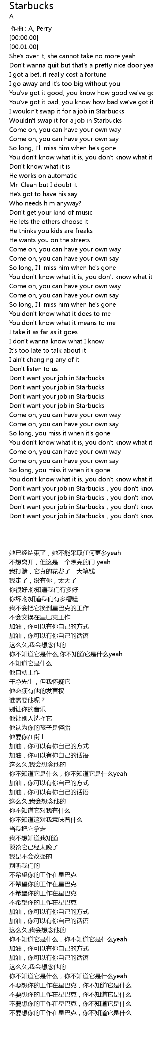 | [03:01.04] | Don't want your job in Starbucks,you don't know what it is |
