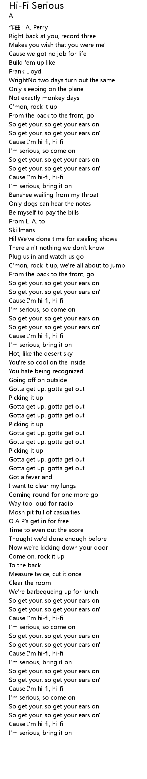 | 歌曲 | Hi-Fi Serious |