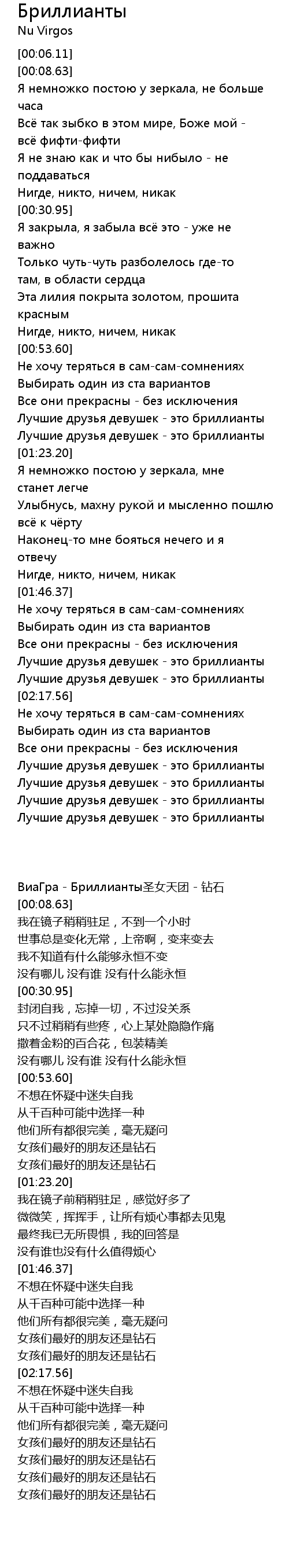 | [00:06.11] | ВиаГра - Бриллианты圣女天团 - 钻石 |