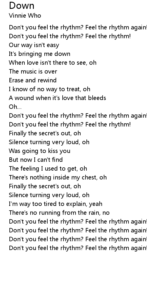 | Don' t you feel the rhythm? Feel the rhythm again! |