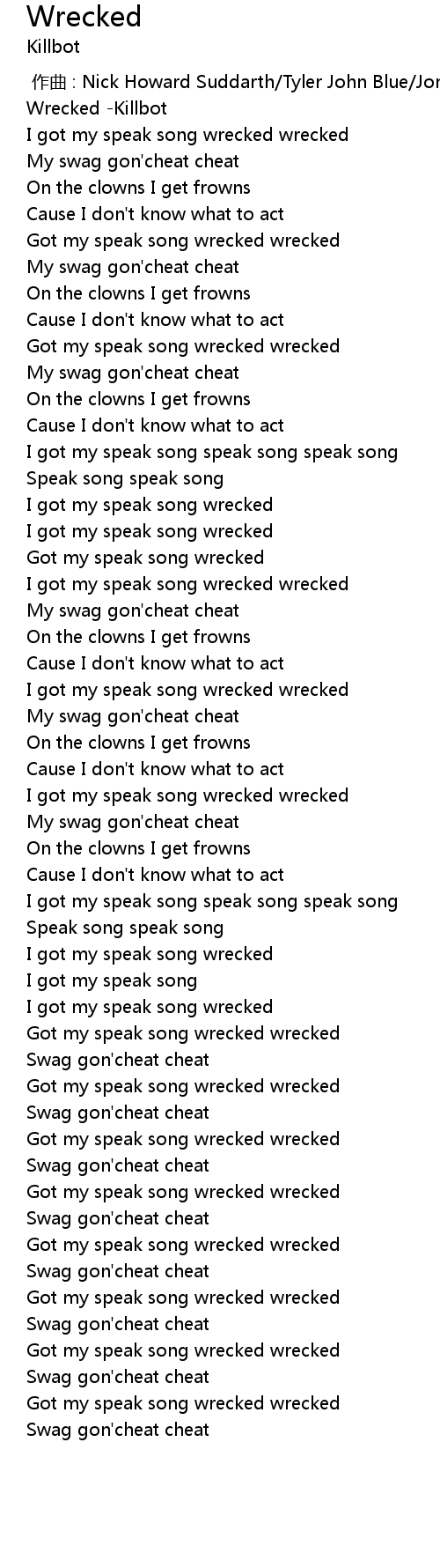 | [00:20.332] | Got my speak song wrecked wrecked |