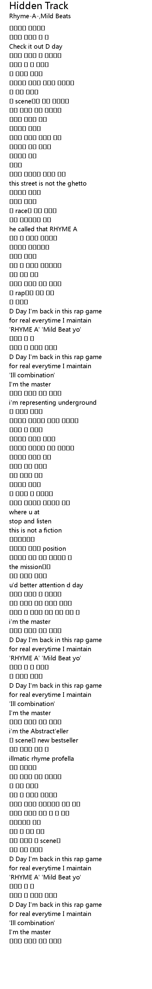 | 'RHYME A' 'Mild Beat yo' | |