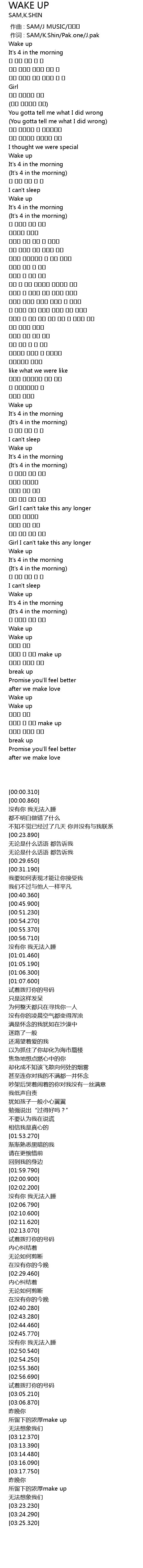 | [00:00.103] | 作词 : SAM/K.Shin/Pak.one/J.pak |