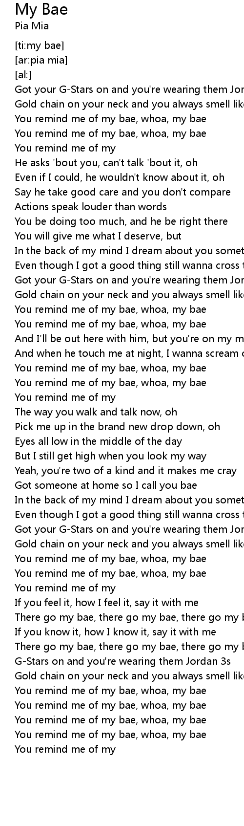 | [00:18.21] | You remind me of my bae, whoa, my bae |