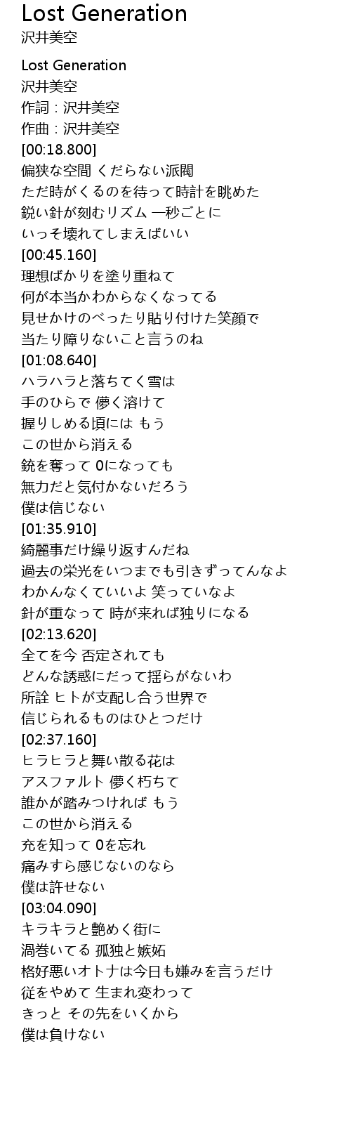 | [03:19.400] | 渦巻いてる 孤独と嫉妬 |
