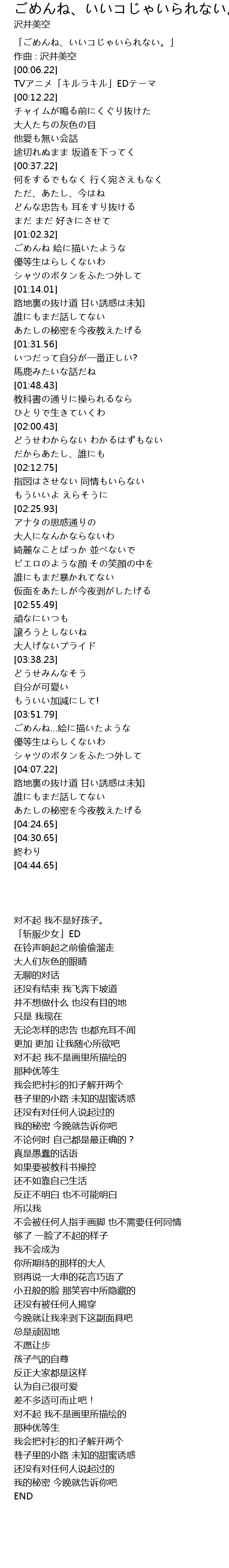 | [00:00.22] | 「ごめんね、いいコじゃいられない。」 |