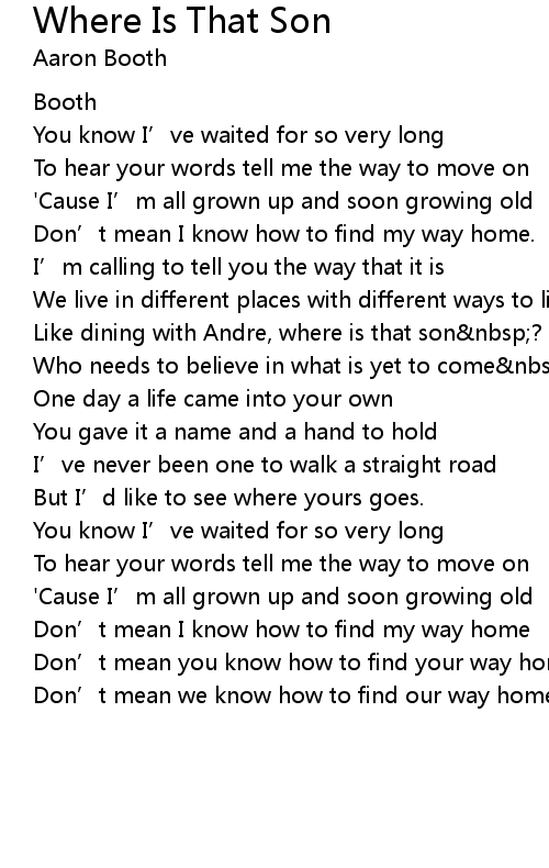 | 歌曲 | Where Is That Son |