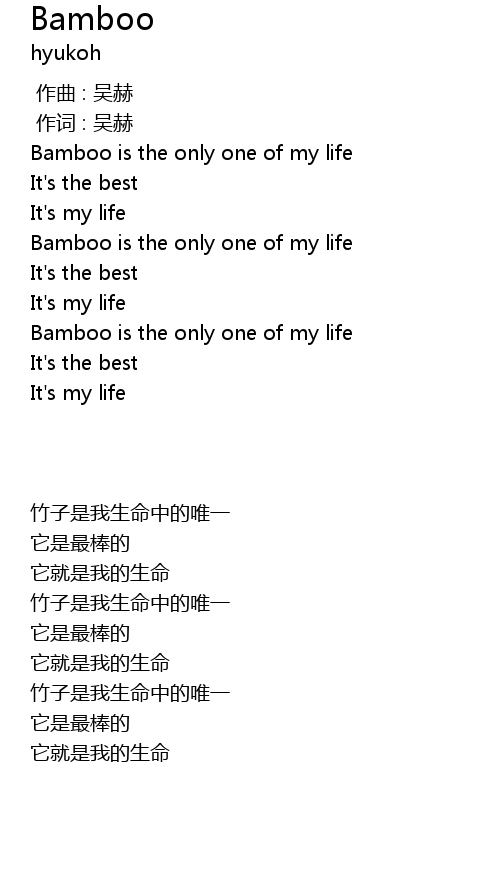 | [00:38.950] | Bamboo is the only one of my life |