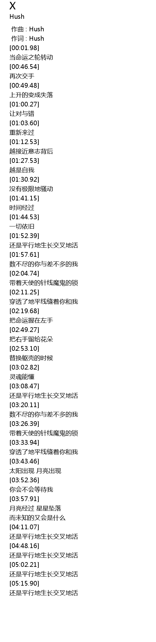 | [04:57.77] | 还是平行地生长交叉地活 |