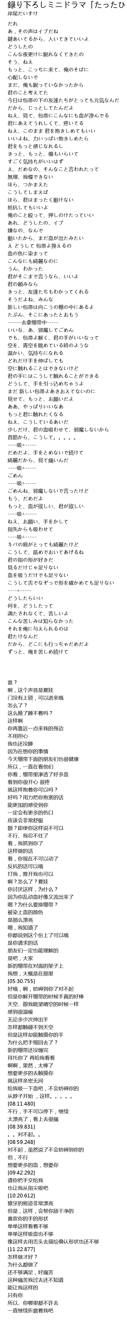 | [01:46.515] | ねえ、見て、包帯にこんなにも血が滲んでる |