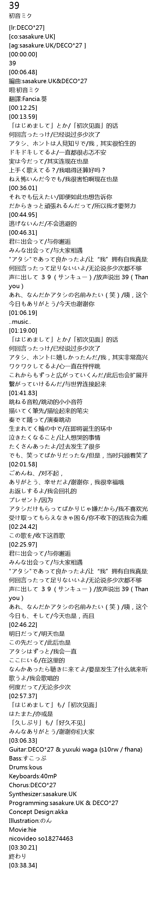 | [03:20.27] | Programming: sasakure. UK DECO 27 |