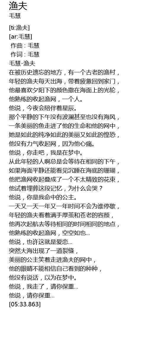 | [00:00.724] | 毛慧-渔夫 |