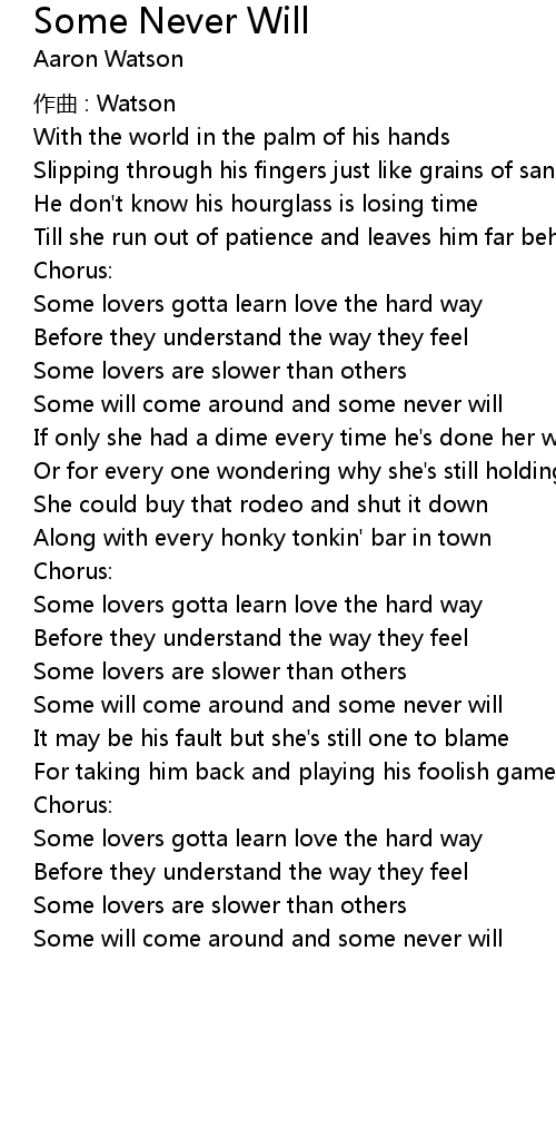 | Some lovers gotta learn love the hard way | |