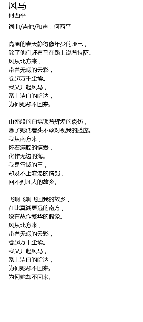 | 词曲/吉他/和声:何西平 | |