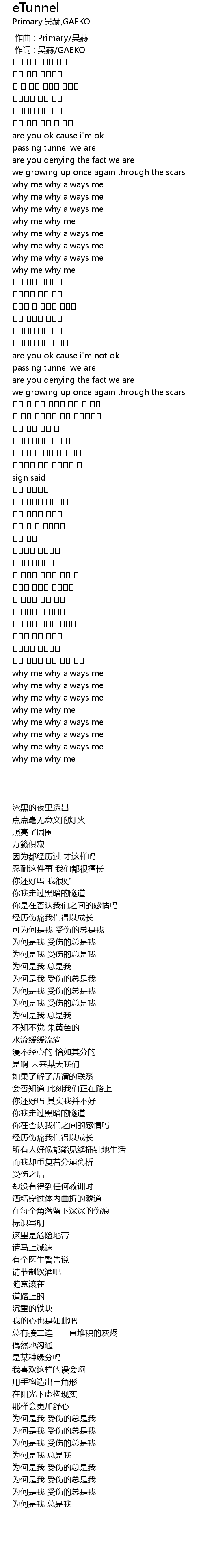 | [00:01.00] | 作词 : 吴赫/GAEKO |