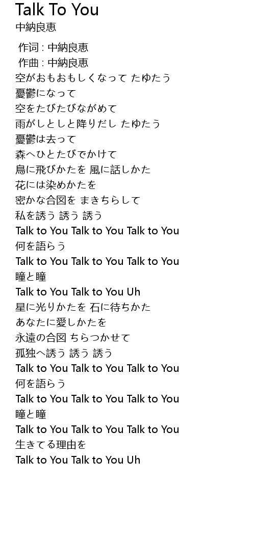 | [03:21.27] | Talk to You Talk to You Talk to You |