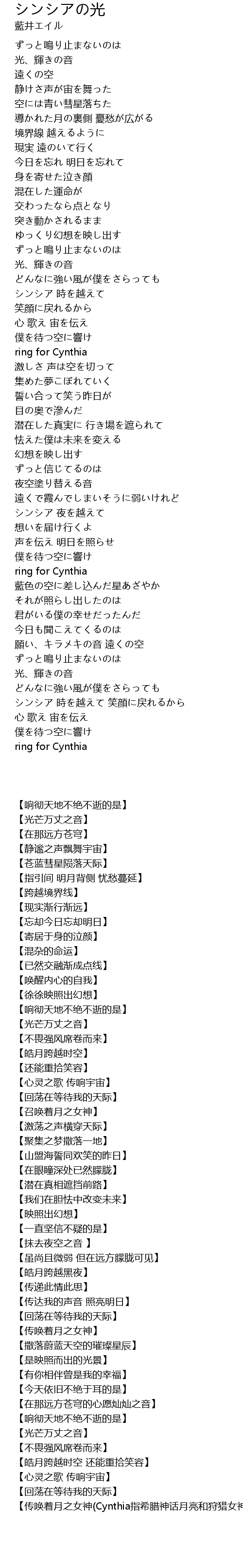 | [03:32.98] | シンシア 時を越えて 笑顔に戻れるから |