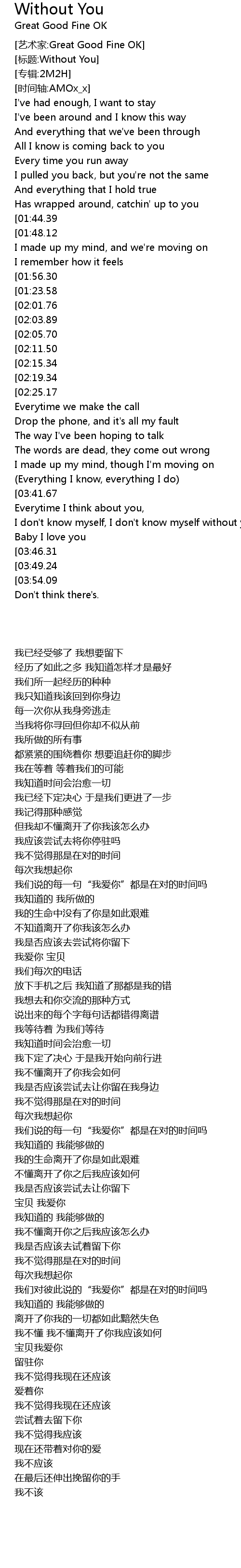 | [01:21.71][02:19.34] | I don' t know myself without you |