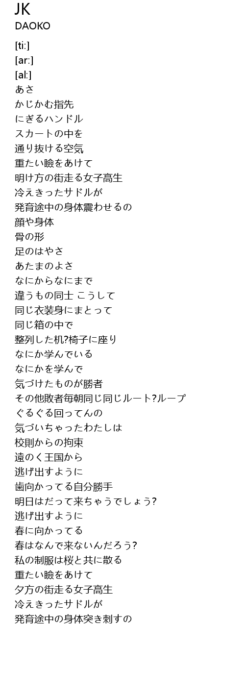 | [02:09.70] | その他敗者毎朝同じ同じルート?ループ |
