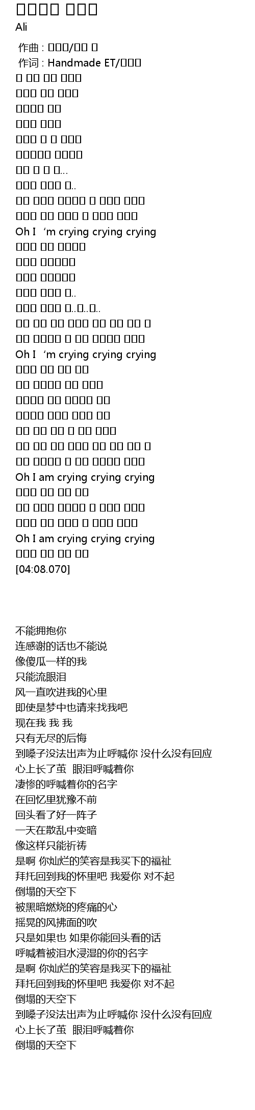 | [01:16.700] | Oh I' m crying crying crying |