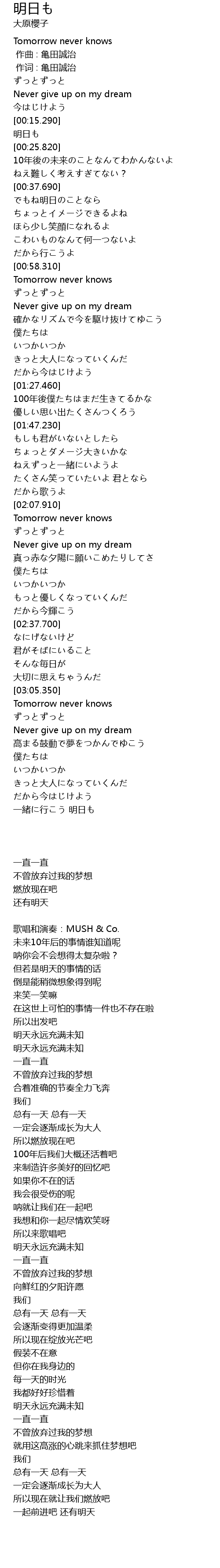 | [00:24.300] | 歌唱和演奏:MUSH & Co. |