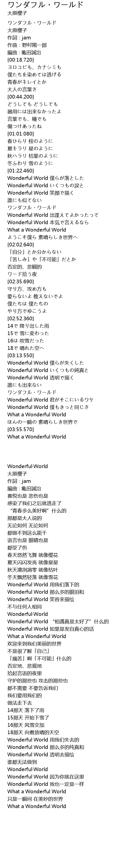 | [00:00.000] | ワンダフル・ワールド |