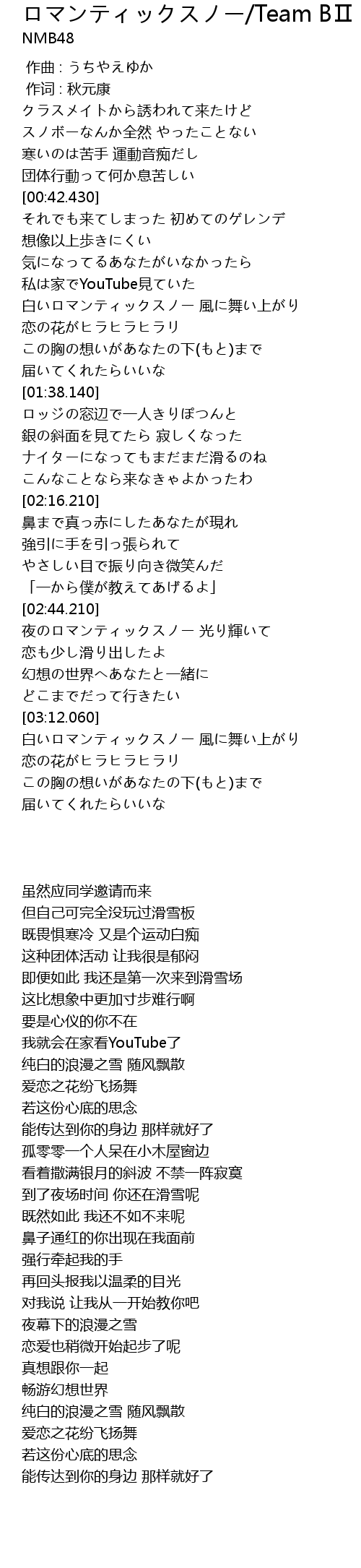 | 歌曲 | ロマンティックスノー/Team BⅡ |