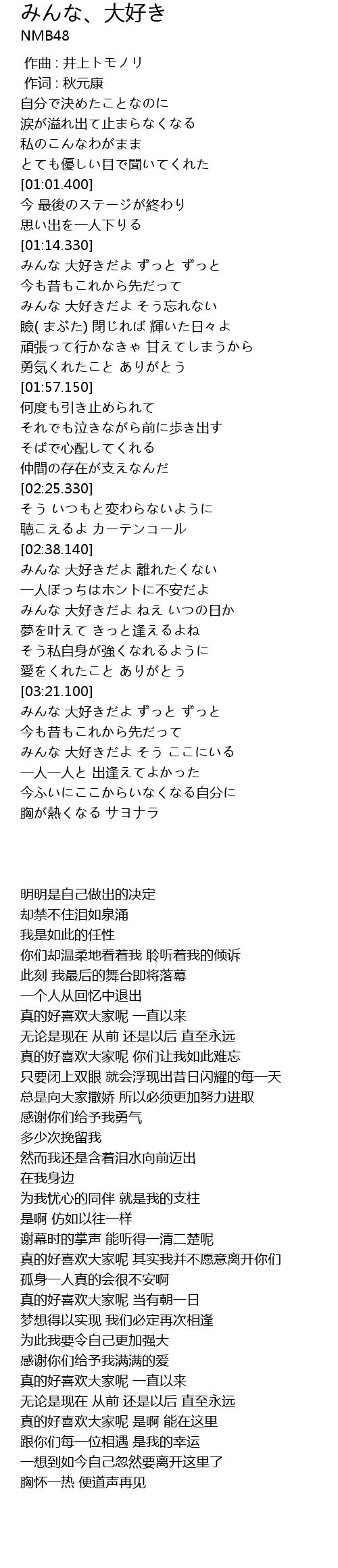 | [02:39.140] | みんな 大好きだよ 離れたくない |