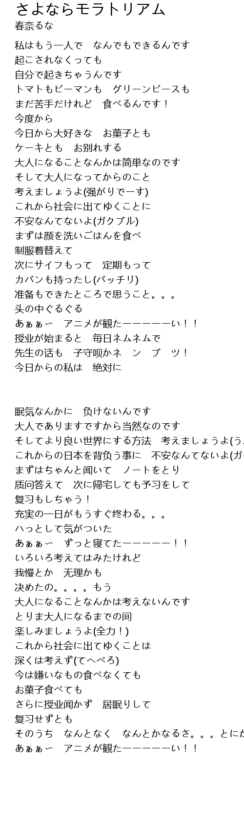 | 歌曲 | さよならモラトリアム |