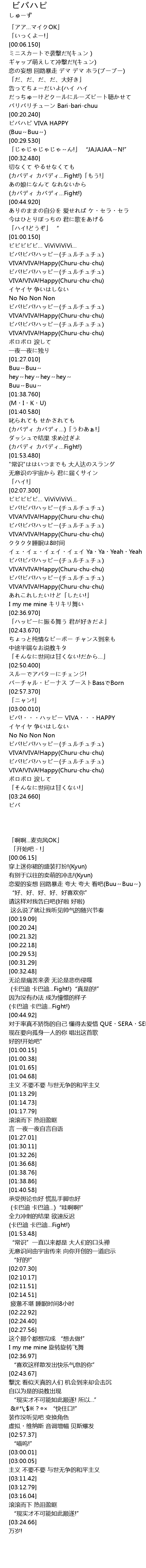 | [01:04.680] | !! VIVA! VIVA! Happy Churuchuchu |