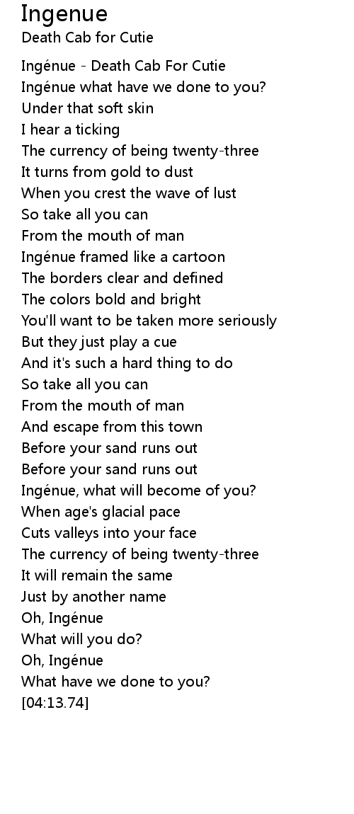 | [00:02.35] | Ingénue - Death Cab For Cutie |