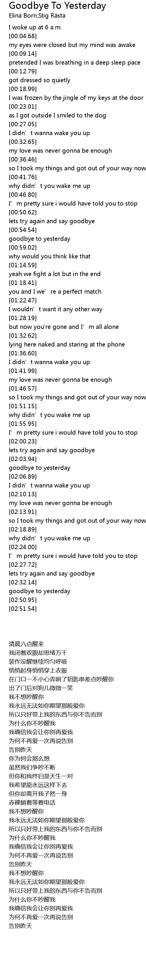 | [02:32.98] | goodbye to yesterday |