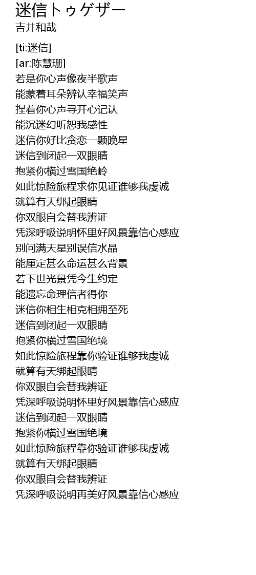 | [02:31.350] | mi xin ni xiang sheng xiang ke xiang yong zhi si |