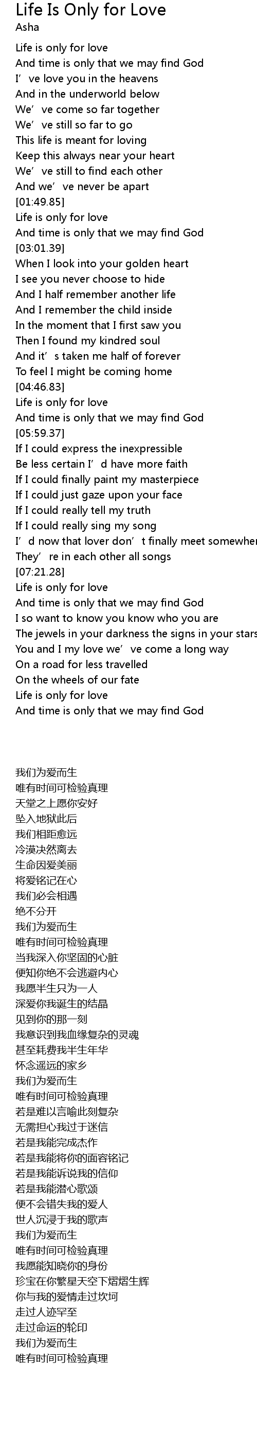 | [05:34.24] | Life is only for love |