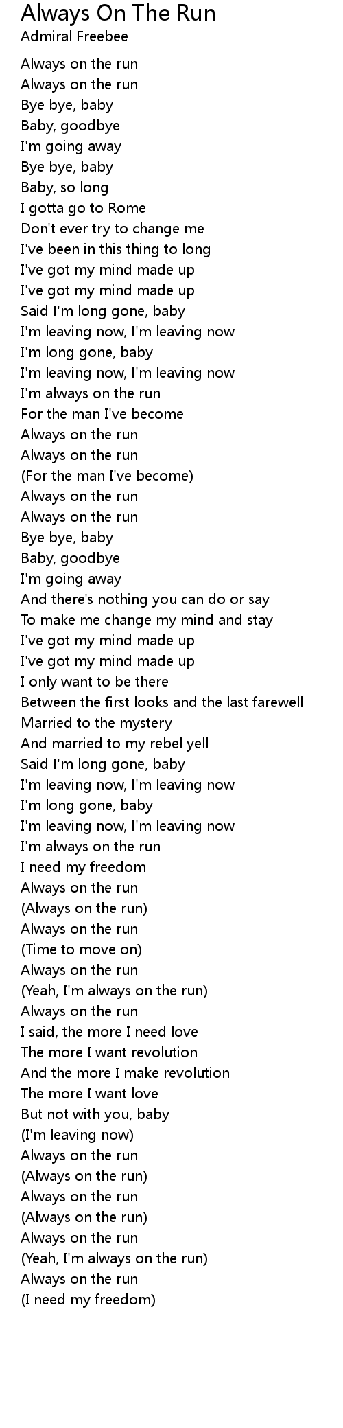 (Yeah, I'm always on the run) |