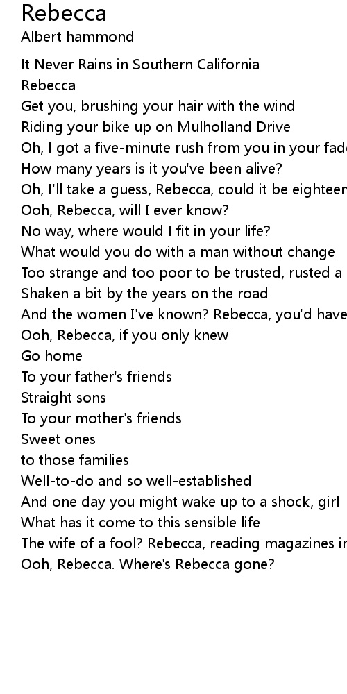 And the women I've known? Rebecca, you'd have liked the name I gave to you |
