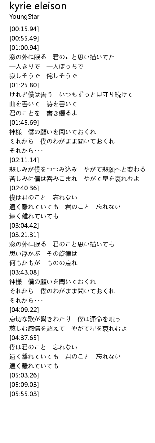 | [03:43.25] | 神様 僕の願いを聞いておくれ |