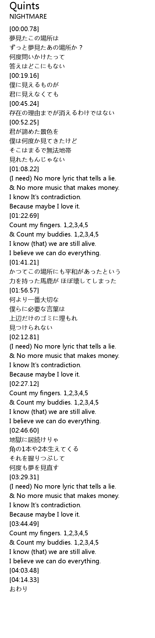 | [02:14.07] | (I need) No more lyric that tells a lie. |