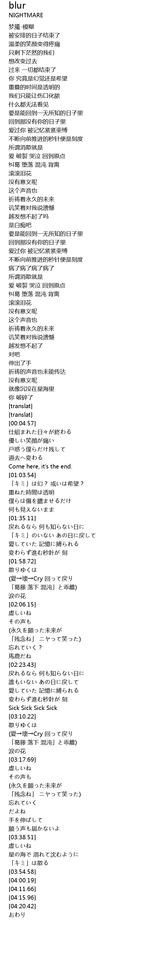 | [01:59.96] | (愛→壊→Cry 回って戻り |